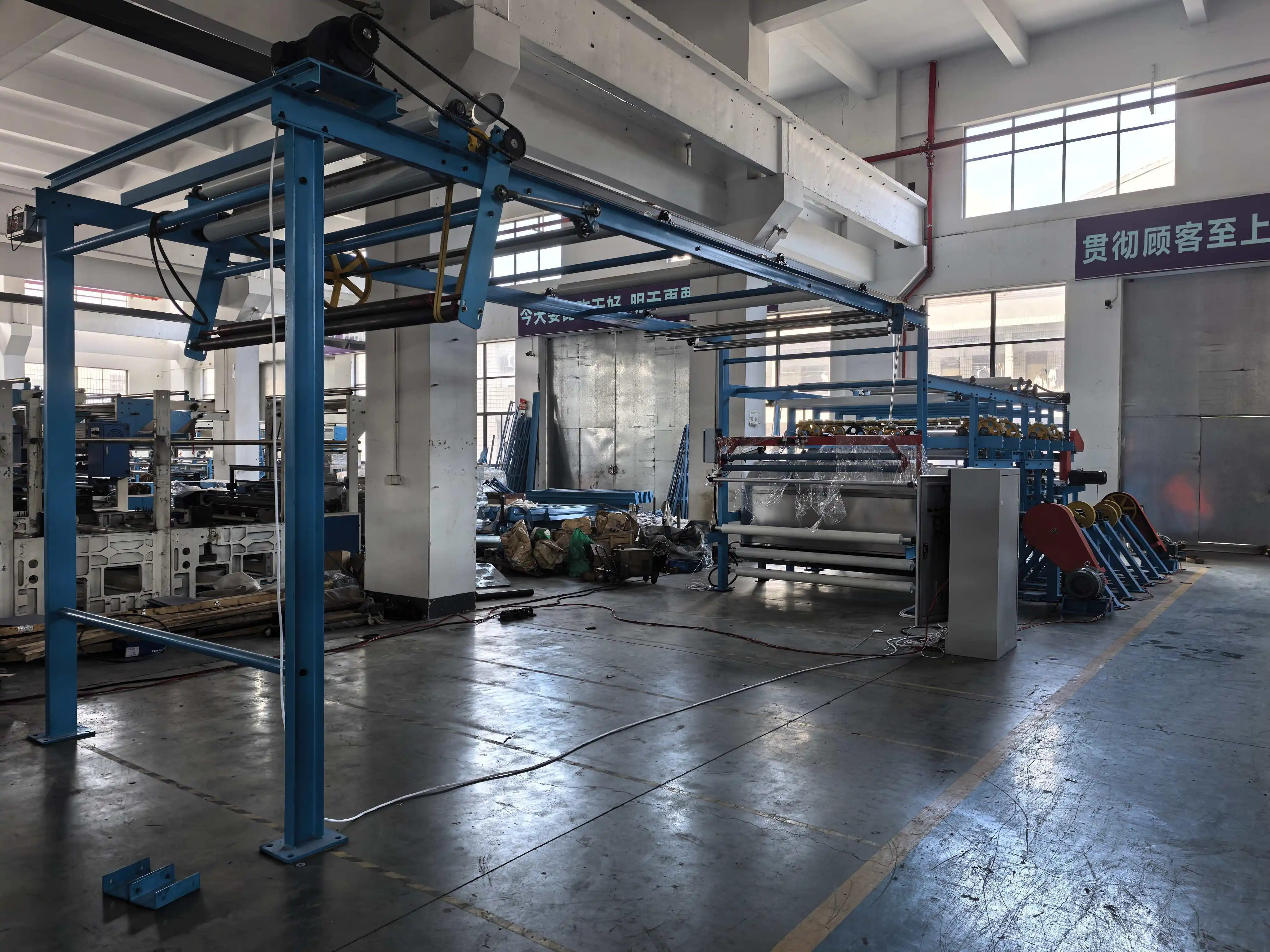 The brackets of the moving components supported by this machine are connected by bolts to the longitudinal and horizontal beams, the structure is