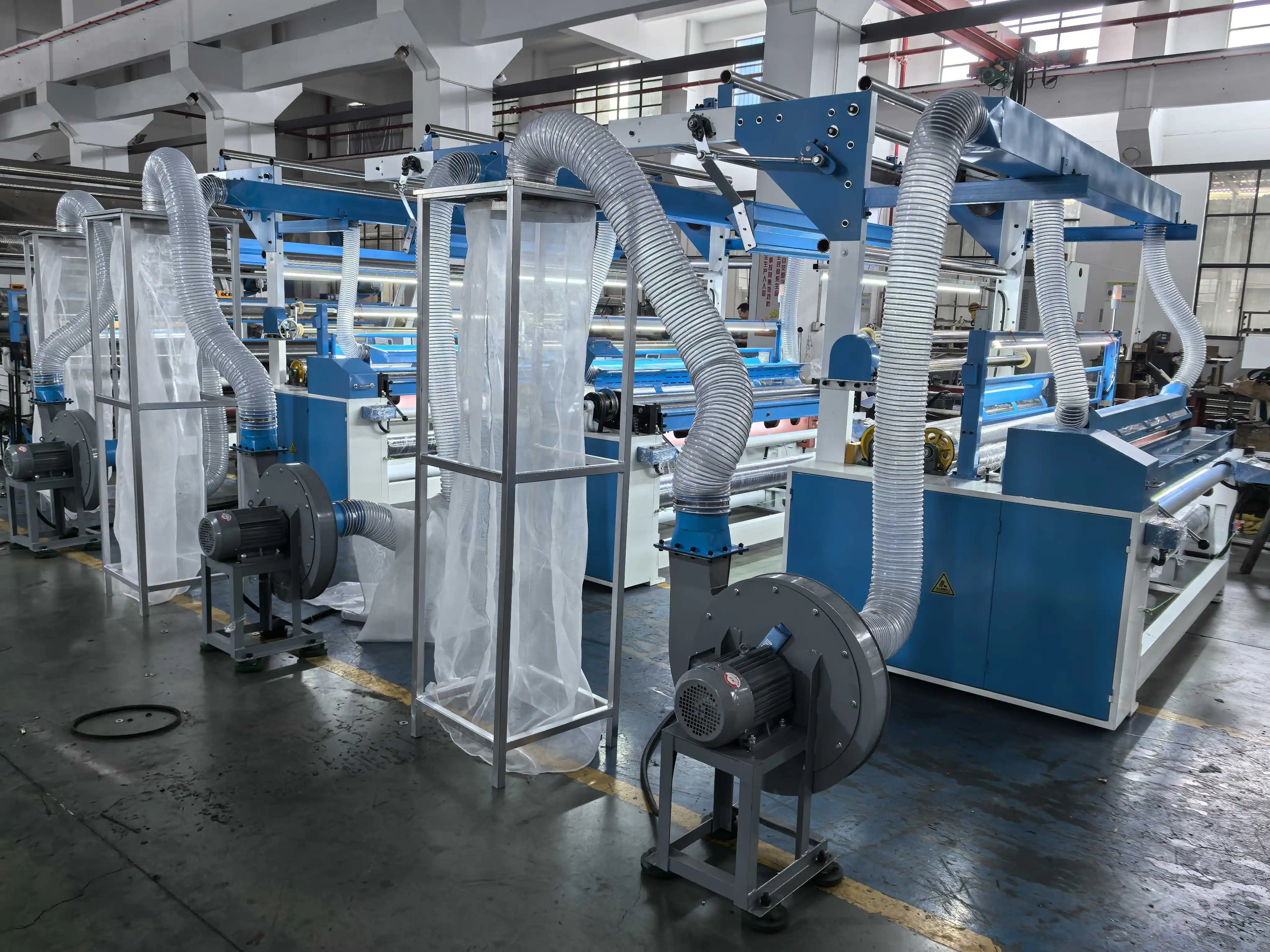 The machine provides strong dust collection and effectively controls flying lint.